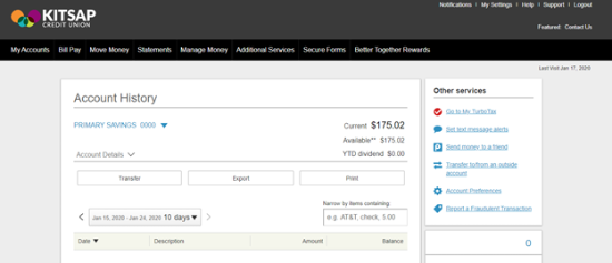 1. Login into your free Kitsap Credit Union online banking account.