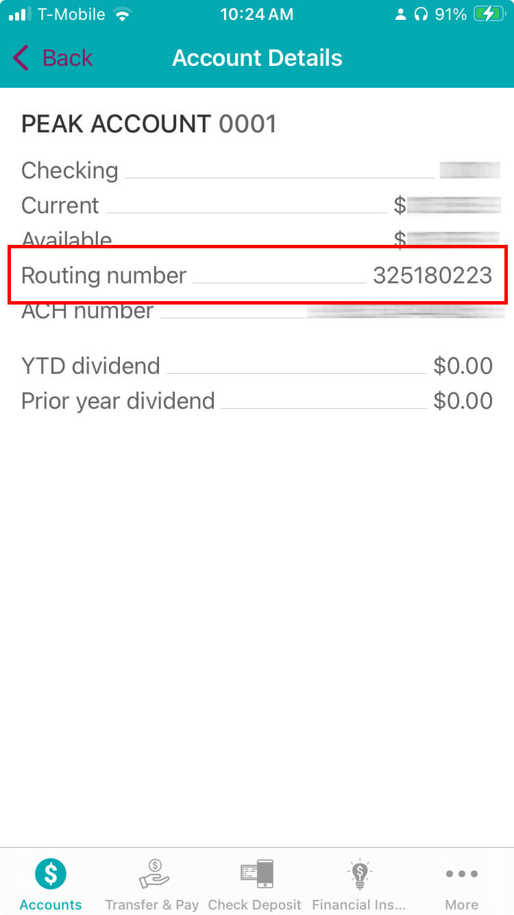 2: Select "Account Details.![]() | Step 3: When the account details are displayed, locate the routing number as the second item listed and account number as the third item listed.![]() |