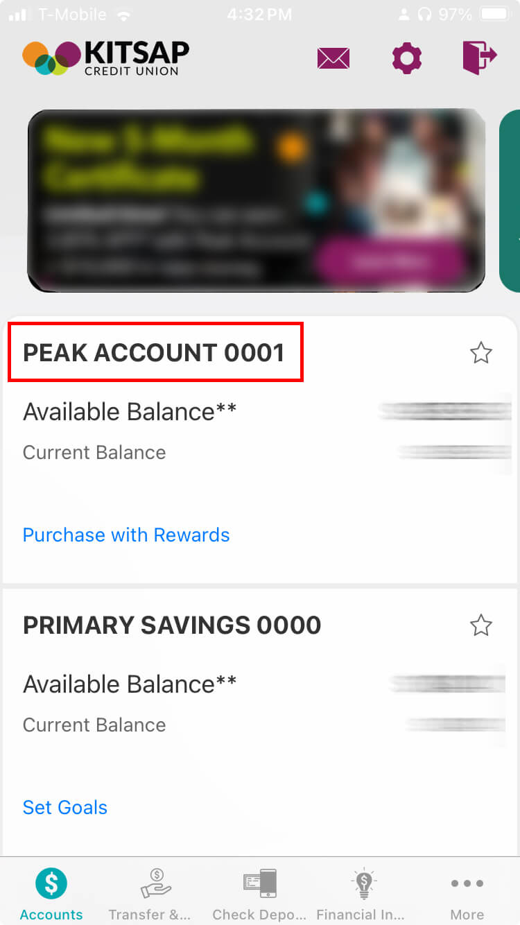 in to your Kitsap Credit Union account and choose your personal checking account.![]() | Step