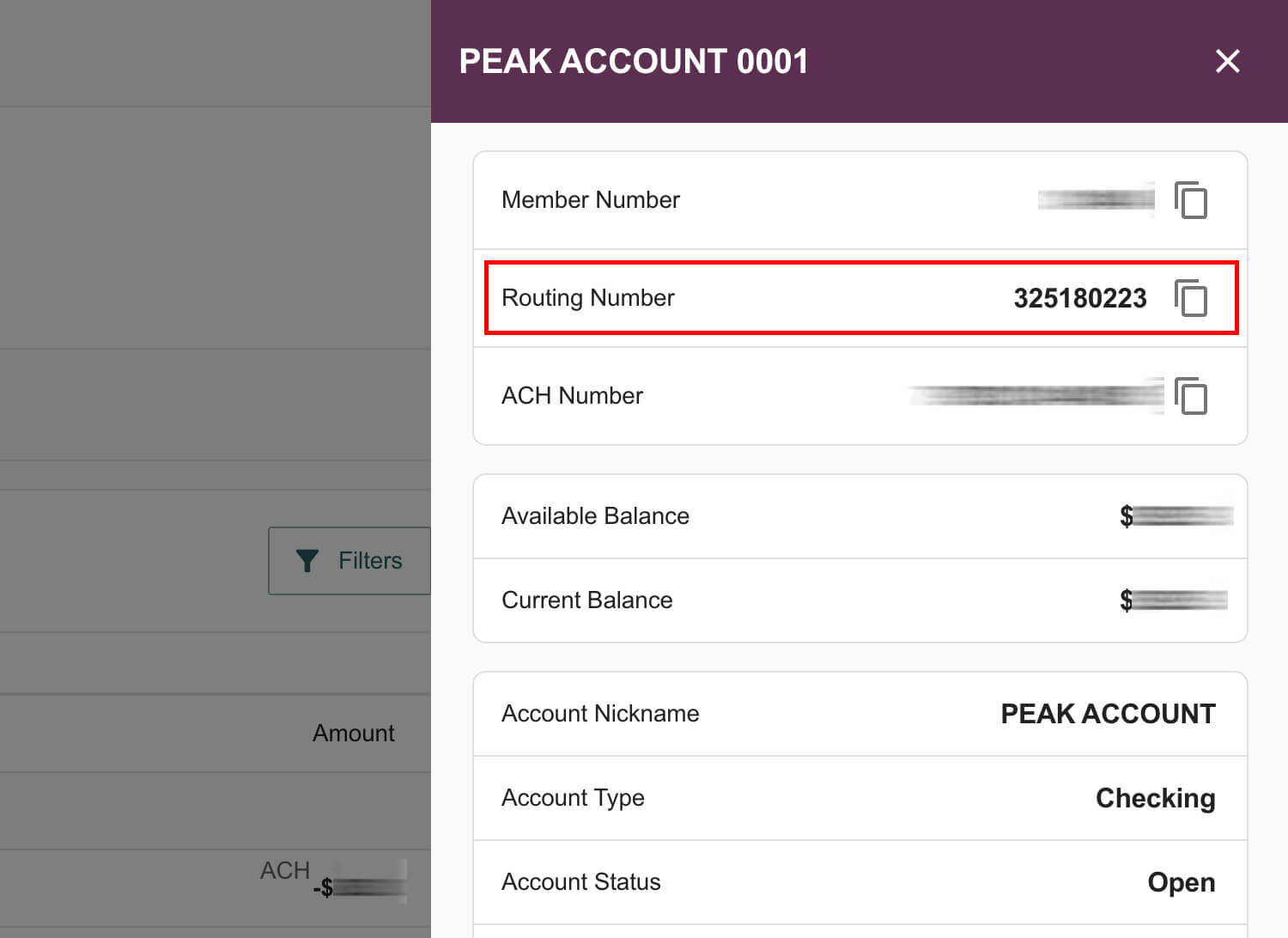 Account Number – Online Banking